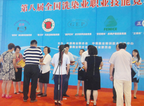 日前,全國第八屆洗染業職業技能競賽在北京國展中心隆重舉行。其中污漬處理競賽繼續由象王洗衣冠名,這也是象王洗衣自2001年首屆冠名以來已連續第八屆冠名。