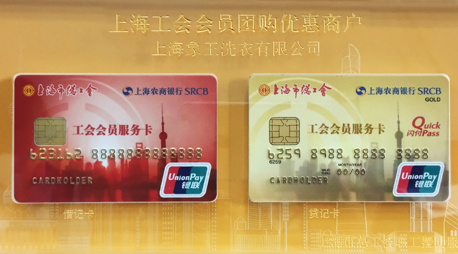 上海工會會員服務卡是由上海市總工會委托上海農商銀行制作發行的借記卡或貸記卡紅色卡片為借記卡,黃色卡片為貸記卡。