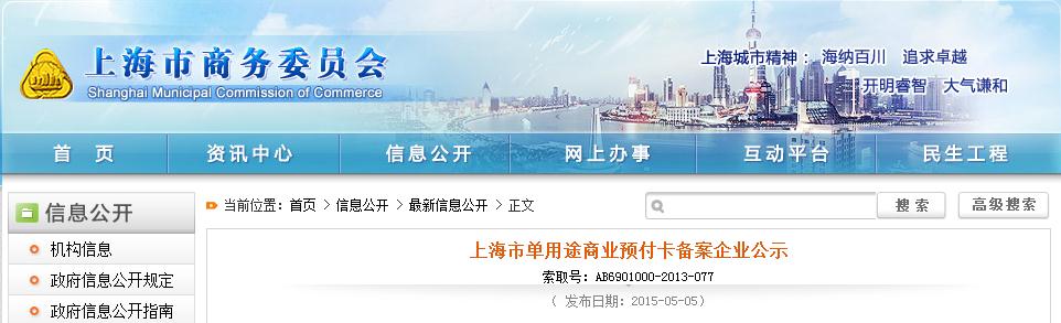 2012年9月商務部頒布《單用途商業預付卡管理辦法(試行)》(商務部2012年第9號令)以來,上海市市、區兩級商務主管部門認真貫徹落實,積極推進有關發卡企業加強備案管理,并嚴格落實資金存管和業務報告制度。2015年5月在上海市商務委員會網站上,公示了全市總共349家備案企業,并向備案企業統一發放了備案公示牌匾。象王已在全市各個門店進行了備案公示。