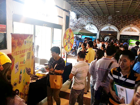 日前,“上海工會服務大篷車”開進了自貿區的魯能大廈,為大廈內的職工送上了一場熱鬧的工會服務嘉年華。活動吸引了二十多家商戶參加,來自基層企業的1000多名職工利用午休時間參與其中。