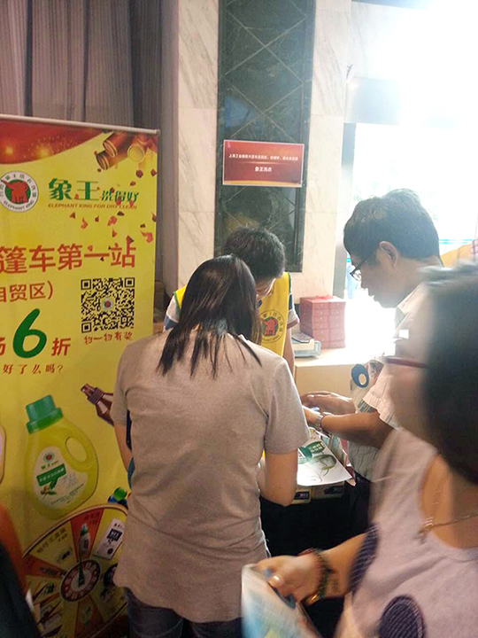 活動現場,上海市總工會副主席侯繼軍開啟了“工會服務大篷車”首站儀式,自貿區工會常務副主任王劍明花了短短幾分鐘做了活動的說明和開場白。本次活動邀請了包括中糧集團、易果生鮮、國藥控股、華氏大藥房、卡西歐、凱馳、TOTO、悅香農業合作社、全統永和等企業共同參與,上述各家公司也都盡其所能地為職工提供各種優惠。作為滬上知名洗衣品牌象王也借此平臺為企業擴大了宣傳,公司自行研發的科技環保洗滌產品在此次活動中廣受青睞。