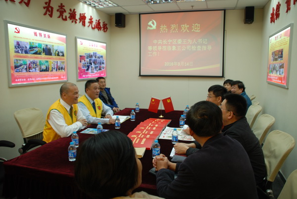 3月14日下午,長寧區委王為人書記、區委統戰部陳志奇部長、區臺辦主任趙紅旗、新華街道黨工委書記曾新躍、綜合黨委副書記趙雪芳等領導到上海象王洗衣有限公司檢查指導工作。