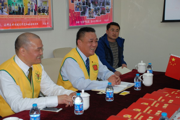 象王黨支部書記蔡士剛與區委統戰部陳志奇部長握手
