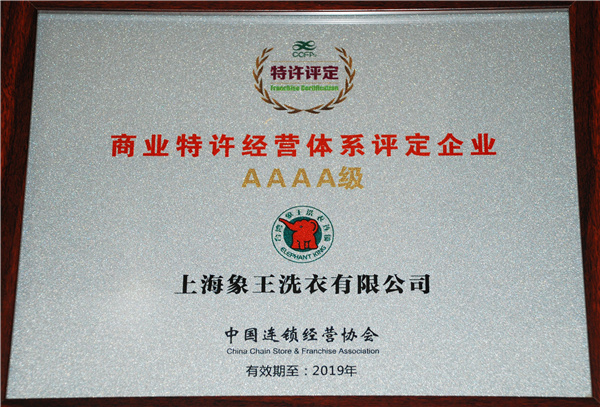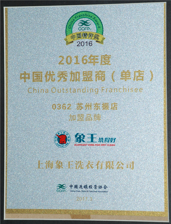 象王喜獲“商業特許經營體系4A級評定企業”獎項;象王蘇州東振店喜獲“2016年度中國優秀加盟商(單店)”榮譽。