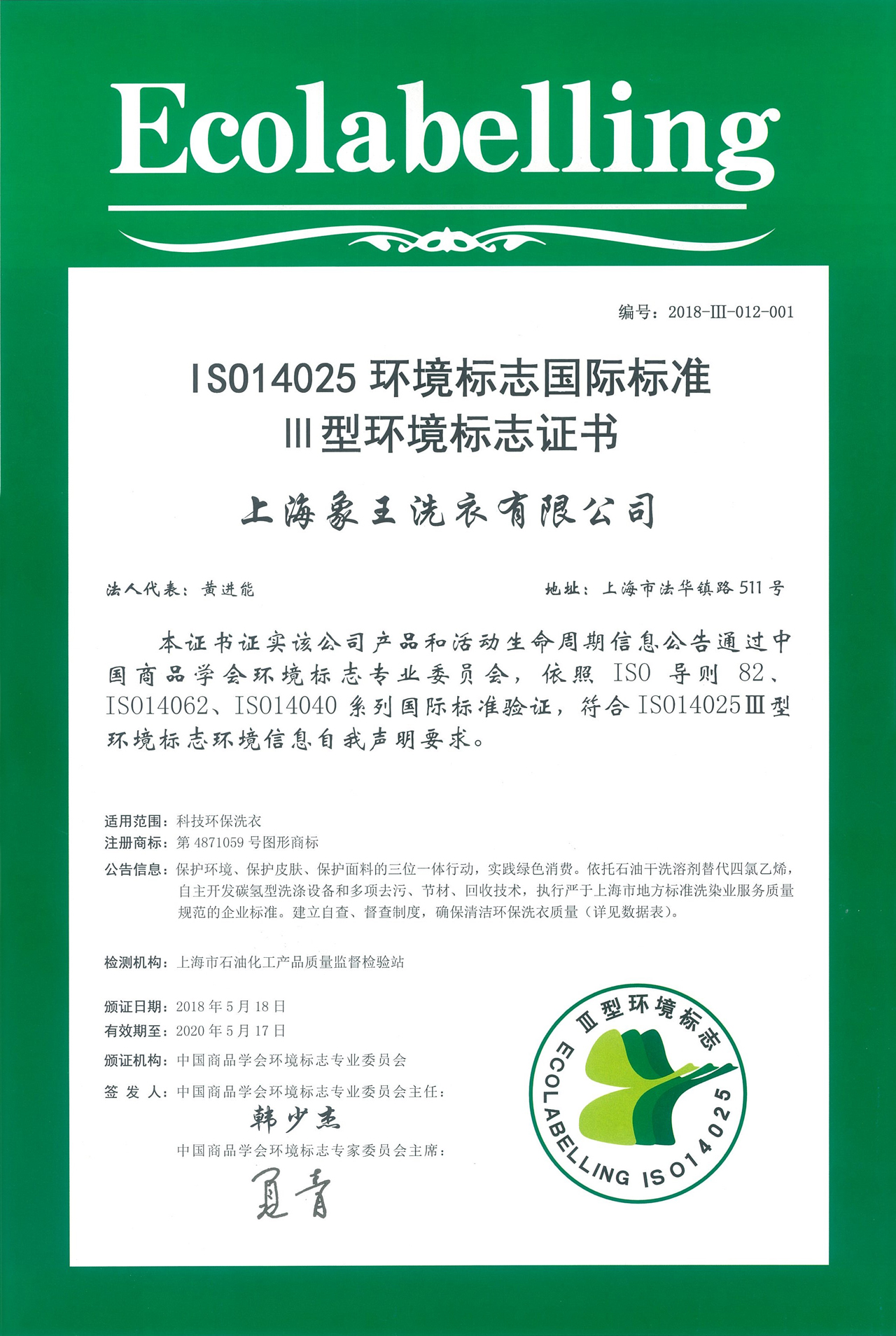 熱烈祝賀象王洗衣再次通過ISO14025國際環境標志驗證,繼續在國內洗衣行業中連續獲得“科技環保洗衣”殊榮。